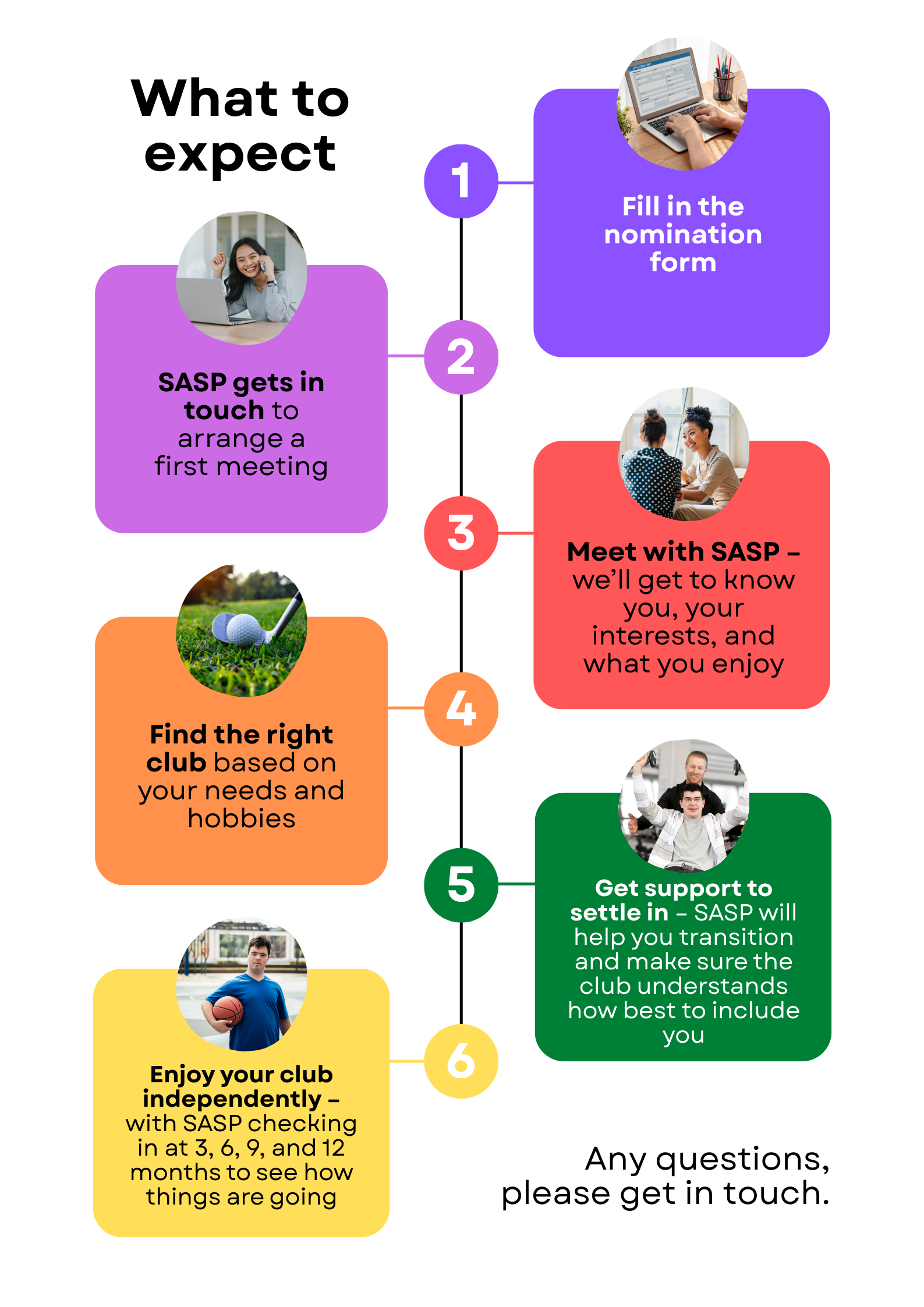 Move to Include supports people with a learning disability and/or autism to get involved in community sport and physical activity. We'll work with each adult and young person (aged 8 and above) to find the right club or activity that matches their interests and needs, and support them as they settle in. Our aim is to make the move as smooth as possible, while boosting mental, social, and physical wellbeing. We also support local clubs who want to open their doors wider and make their activities more inclusive for everyone.